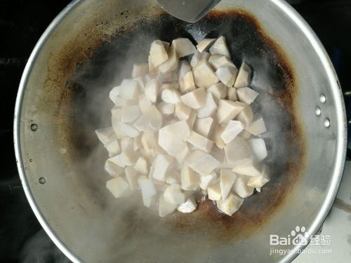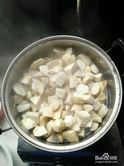 芋头洗净,切块,放入锅中,蒸10分钟。