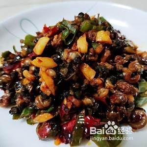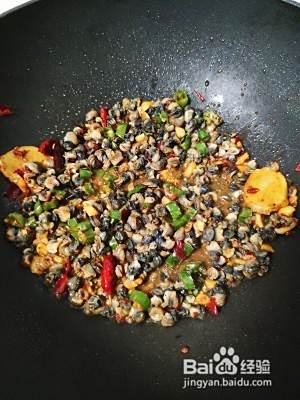 下入螺蛳翻炒,倒入少许白酒去腥,豆瓣酱咸味够了,不需要放盐。