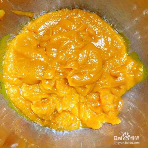 南瓜蒸熟加糖打成泥。