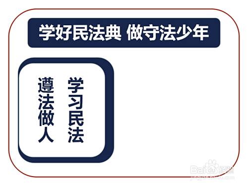 第四步,左下角画上一个边框,里面准备写入“学好民法典 做守法少年”的相关内容。