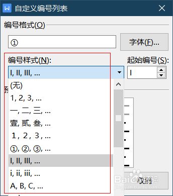 根据需要,选择“编号样式”和“起始编号”,点击“确定”即可完成WPS自定义编号。