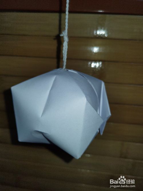 同样的方法,把刚刚折好的,多出来的边角,折近空隙里面如图。四个都必须折进去。折完了,现在灯笼就已经完工了,只要往里面吹气。把牙签折成合适大小的,绑上线,放进灯笼里面,提起来看看是不是个很好的灯笼呢?