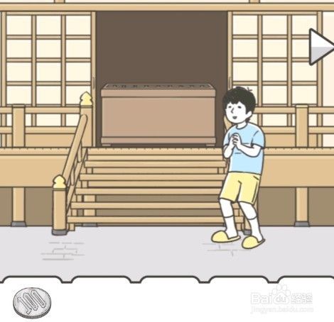 然后打开中间的门,将100钱币丢进箱子里,再拉动绳子。