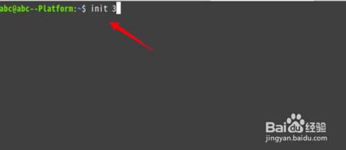 打开了终端窗口,在窗口上输入init 3命令,并按下回车。