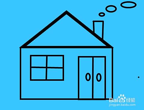 再画几个圆圈作为烟,这样一个正在生火的房子就画好了。