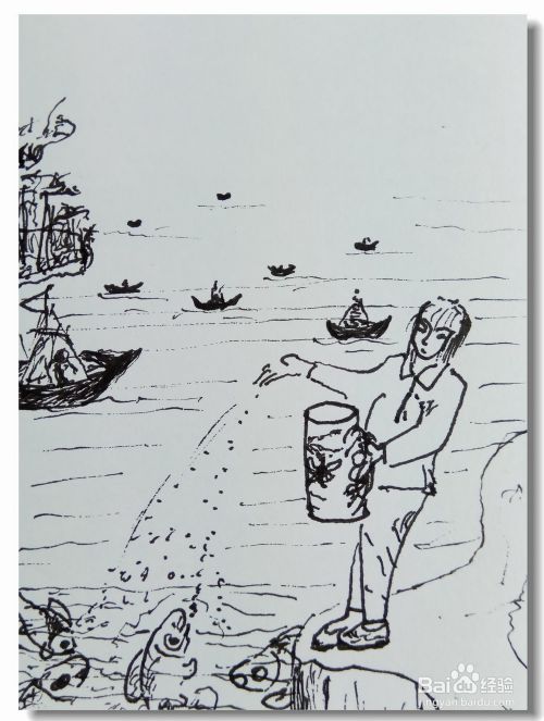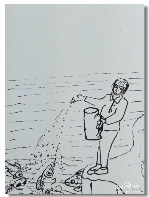 多画几条鱼,鱼看到有吃食来了,肯定成群结队的游过来。