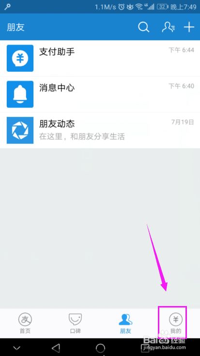 来到了支付宝页面,我们点击下右下角的“我的”,如图。