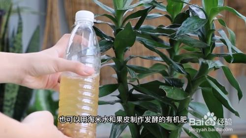 也可以用淘米水和果皮制作发酵的有机肥,加到培养瓶里使富贵竹枝繁叶茂。