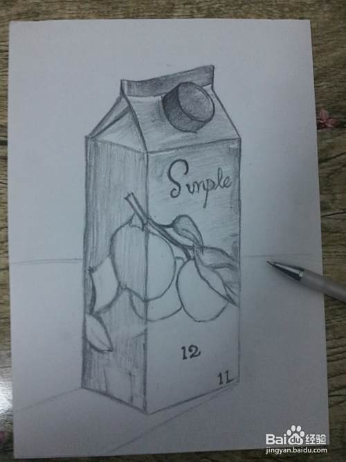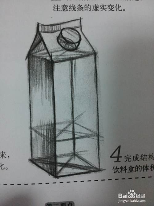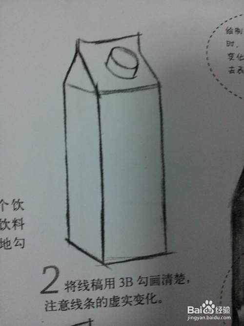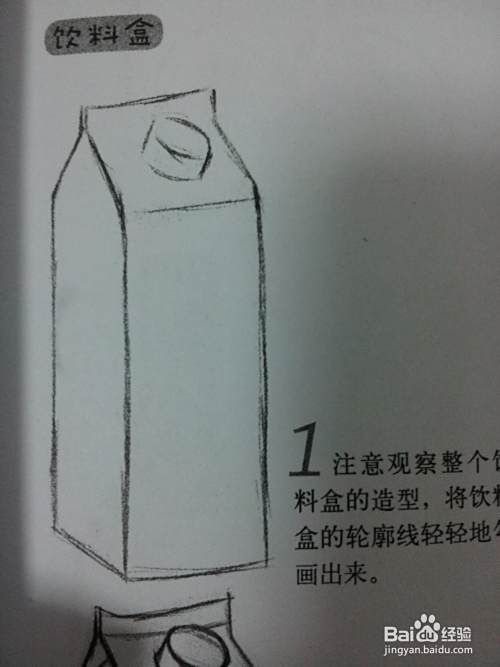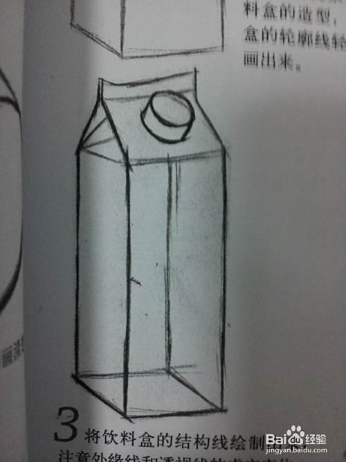 注意观察整个饮料和的造型,将饮料盒的轮廓线轻轻的勾画出来。