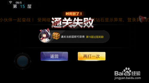 闯关失败后,可以点击再打一次进行闯关或返回。