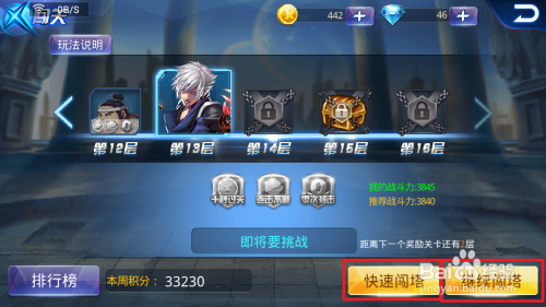 闯关方式有快速闯塔和继续闯塔(自己亲自打)两种方式。