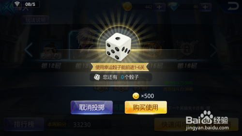 快速闯关----通过掷骰子,获得的点数=前进的关数,一次500金币。
