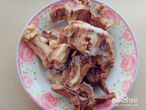 羊蝎子炖好了很美味哦,肉质很香的。先把羊蝎子剁成段,用水焯一下,去血水。