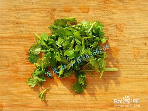 接下来需要把香菜摘好,洗好切成段,您可以切的碎一点,这样更容易入味。