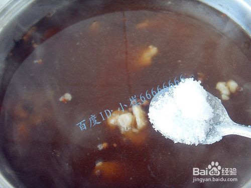 往锅里加入适量的盐和鸡精使其充分溶解。