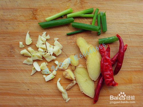 还要准备适量的姜片,葱段,蒜块和红辣椒。
