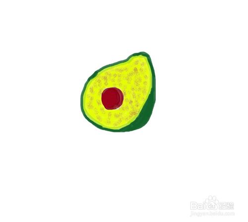 选择黄色沿着果核外围画出牛油果果肉的轮廓,然后使用油漆桶工具结合笔刷工具填色。