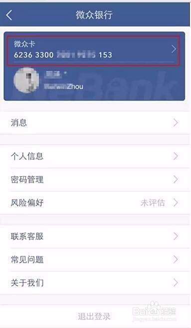 打开微众银行App,点击头像进入个人中心查看微众卡