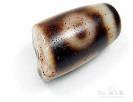 二、看天珠的色泽,天珠一般呈黑白色、深棕色及乳白色四种相间的纹路,黑白分明的纹路也是许多人首选之一。(台湾仿的新天珠为后者)