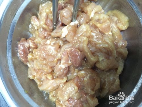 先把肉洗干净,切成小片,装盘后加盐,加糖,加生抽,加生粉,加一点油搅拌一下,待用。大蒜洗干净,切好装盘待用。