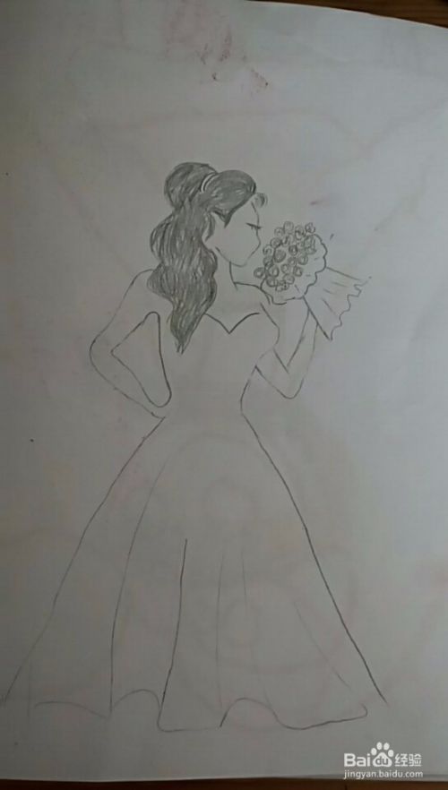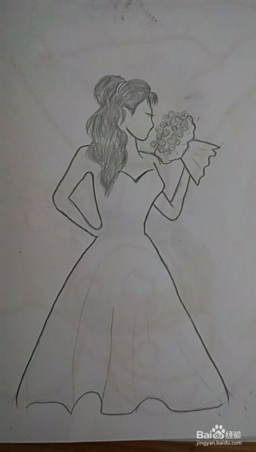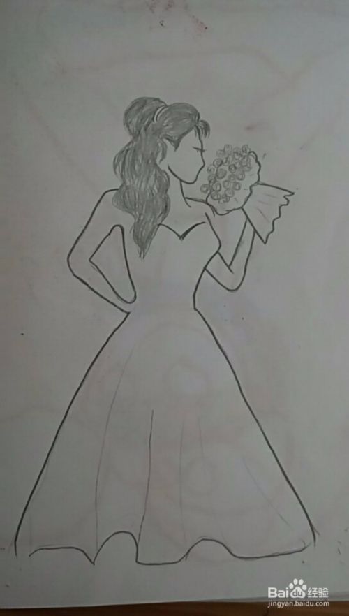 然后细化下手臂,再画出礼服裙子大致线条