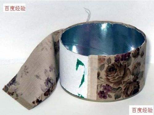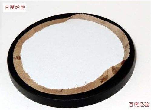 1照着盒盖大小将硬纸板裁剪成适当的圆形,再以此圆形版裁剪布料(包装纸),折份留出0.5~1公分(厘米);