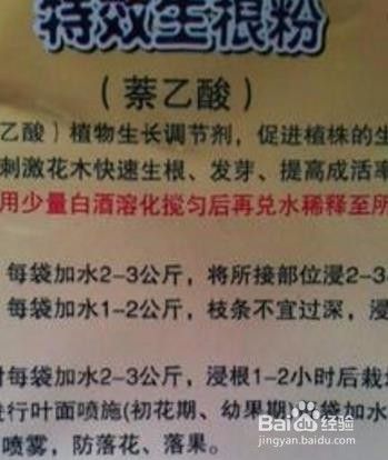 将插穗晾晒1~2天,等底部稍发蔫后,在扦插部位涂抹生根药剂,或用生根药剂浸泡1~5分钟左右。