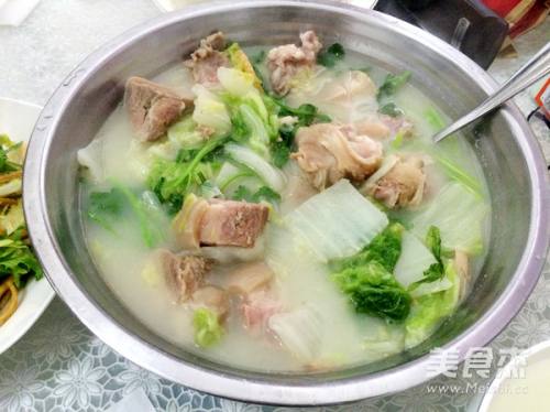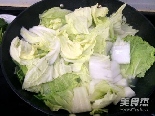 10把白菜放入汤里,不用管它,白菜变软就会融入汤中
