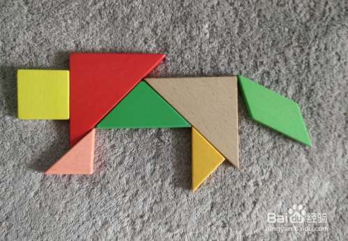 在本色三角形右侧,放上平行四边形挨着,如图。这样就拼好了。