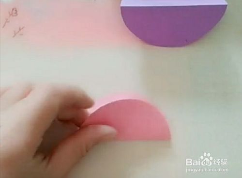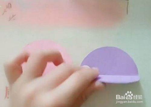 第一,去一张圆形彩纸,沿直径对折,具体操作如下图: