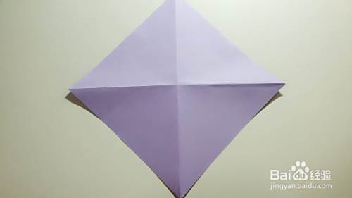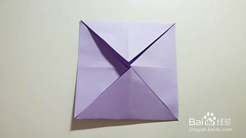 首先将准备好的正方形的彩纸沿着各自对角线对折后打开,将四角分别沿着中间点对折