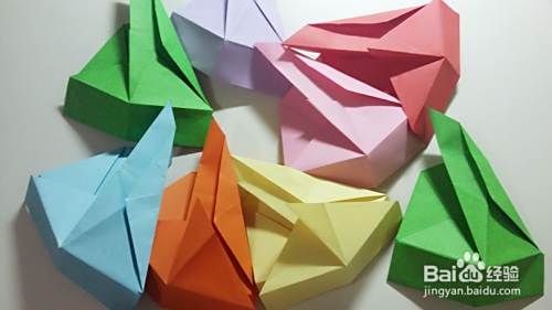 最后将内边图形依次压紧,如图中所示,一个漂亮的礼盒就做好了,作出同样的两个,然后将两个盖紧,一个七夕礼盒就做好了哦