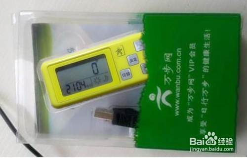 计步器包装简单,透明盒子,绿色花纹,白色文字,内置计步器、数据线、说明书、合格证还有一个小铁片作为螺丝刀,用来起开电池盖上的螺丝。