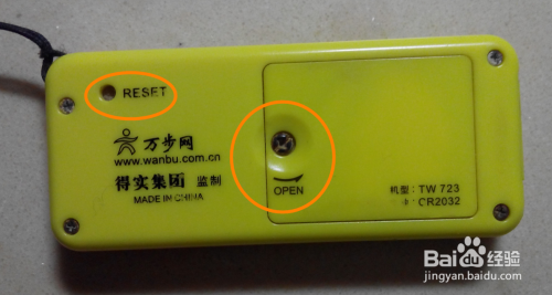 背面是电池盖,内饰纽扣电池。还有复位按钮,可以用细小物品按下去恢复出厂设置。还有型号、生产商等信息。