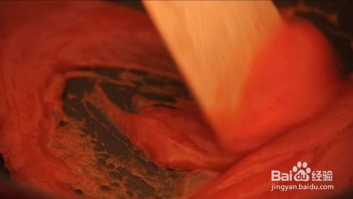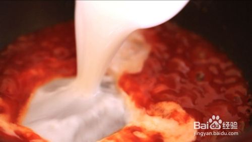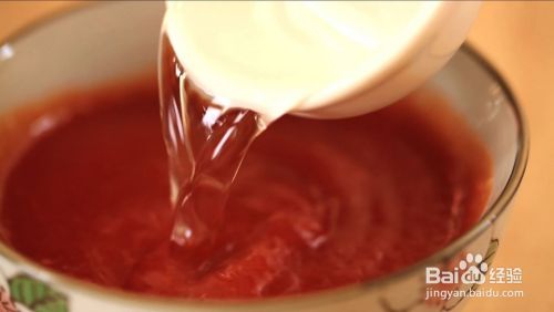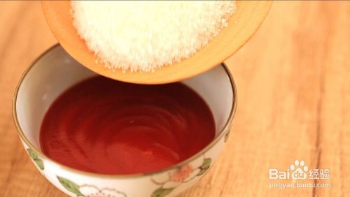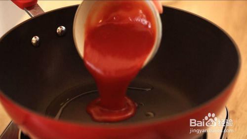 锅中热油倒入番茄酱,水淀粉搅拌均匀