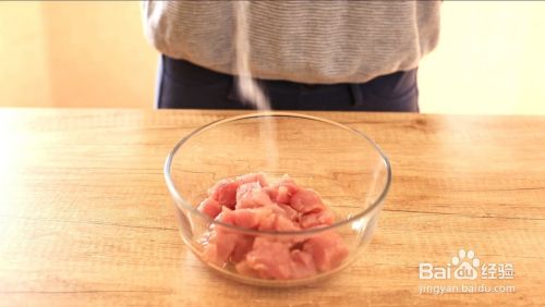 将里脊肉用料酒、盐、蛋清、搅拌均匀