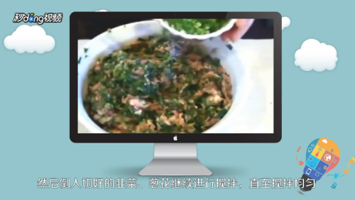 然后倒入切好的韭菜、葱花继续进行搅拌,直至搅拌均匀。