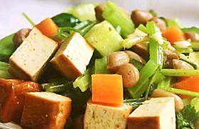 黄瓜洗净,和豆干都切成小丁放到盆内