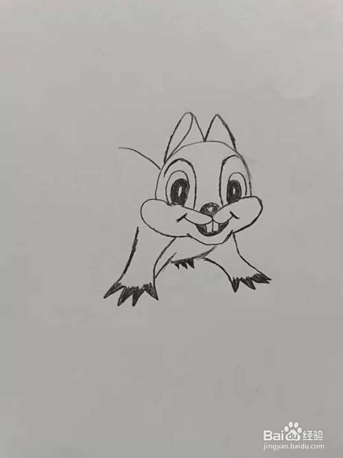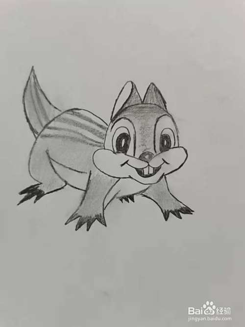 最后,画小花鼠的身体轮廓和后爪,卡通小花鼠,就画完了。