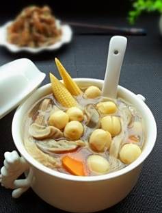 莲子100克,猪肚50克,将猪肚切成细条,两者放到锅里煲汤,可以加调料,其中比较重要的,是放入一调羹的黄酒,煲汤一个小时。然后,可以吃莲子,吃猪肚,喝汤。