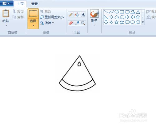 第1步我们先画一个三角形,这个三角形的底边画成圆弧的形状,这就是这个三角形西瓜的外轮廓,