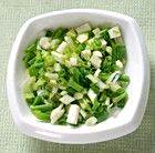 锅内放清水烧沸,加入1小勺盐,再加入豆腐,待煮沸时捞起,锅内放油烧热,小火爆香葱花。