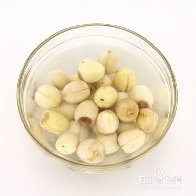 同时莲子去莲心,放入容器中,加入适量清水泡发。