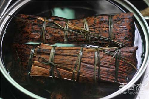 13将做好的粽子放在锅里,加入没过的水,我的容器小了点,水没有没过粽子,所以在煮的时候要将它们翻个面,以防有些熟了有些没熟