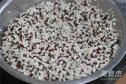 3和糯米一起混合,加入少许盐调味(盐不用太多,微微有点咸味就行了,腊肉也是咸的,如果盐太多味道就太重了)
