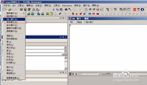 接下来我们就可以开始操作这个数据库了。下面我简单演示下,我们点击左上角的按钮菜单,出现如下图所示,我们点击"SQL窗口”,新建一个SQL窗口。