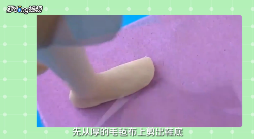 1先从厚的毛毡布上剪出鞋底,如果没有厚布,可以把两块叠放粘贴。