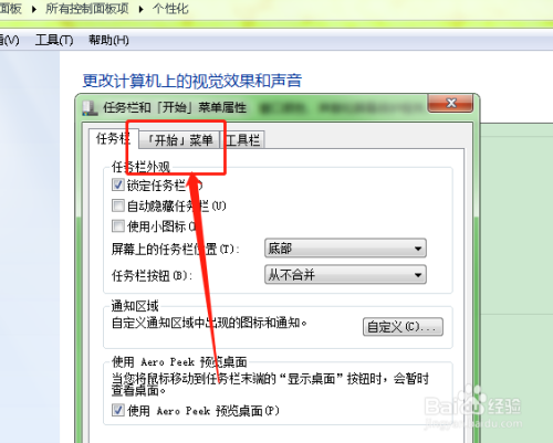 然后点击其中的任务栏和开始菜单。