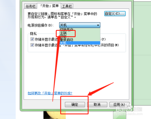 最后在电源按钮的下拉菜单中选择注销即可,然后点击下方的确定键。