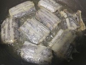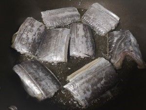 带鱼洗净切段热油煎